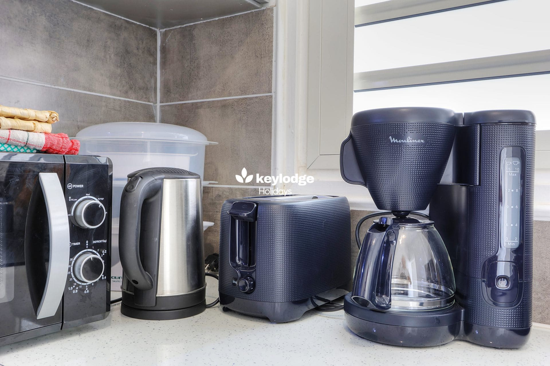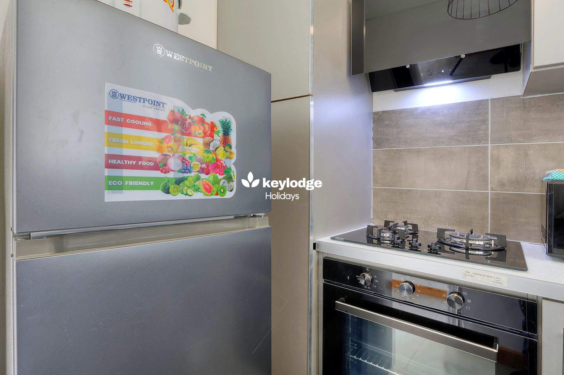 ✅An independent, fully fitted and designed modern kitchen for your stay, with all crockery and kitchen utensils, kettle, microwave, oven and a refrigerator as well as a freezer.