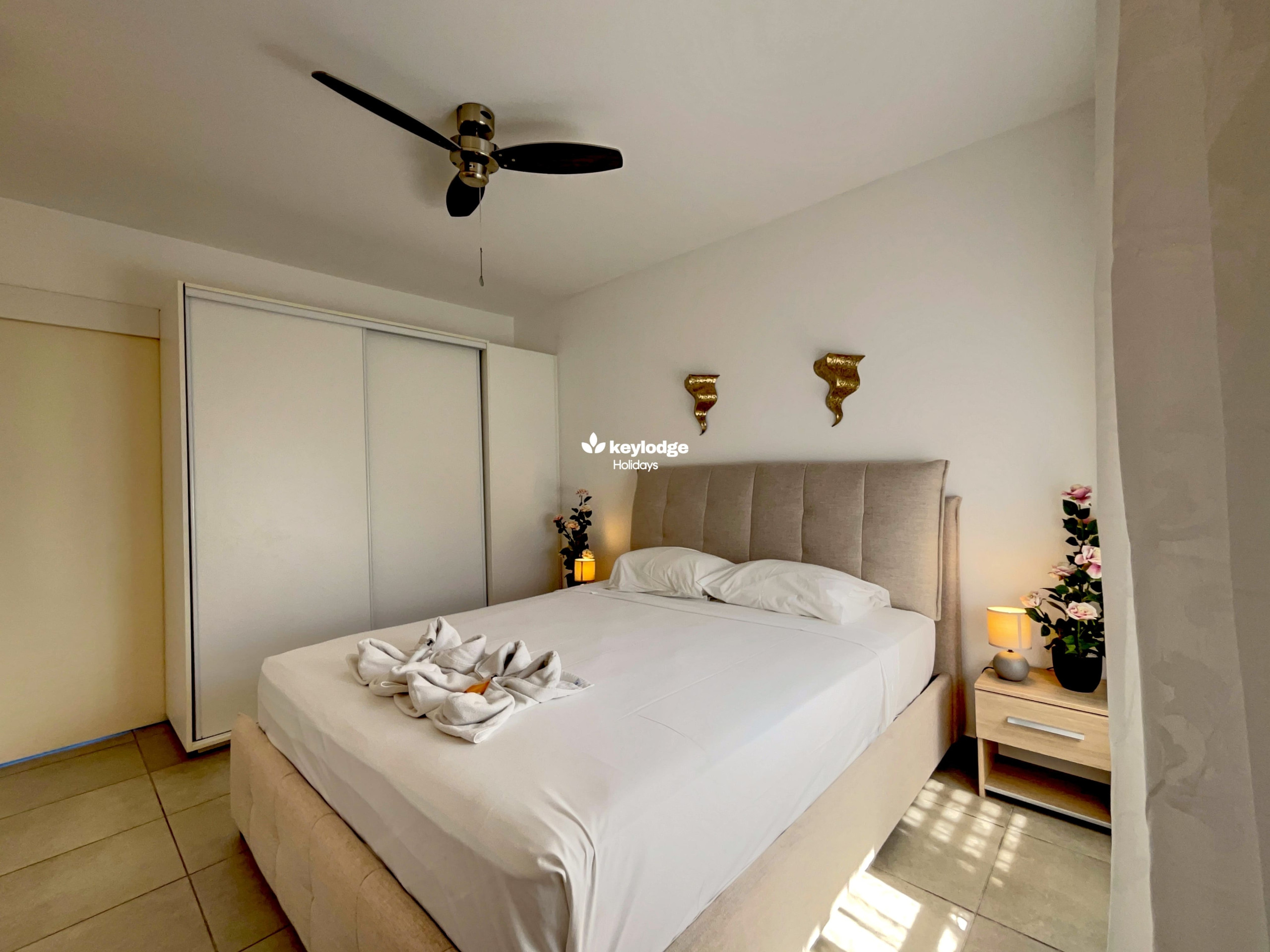 ✅ Two bedrooms equipped with ceiling fans, a king-size bed and storage space for your belongings.