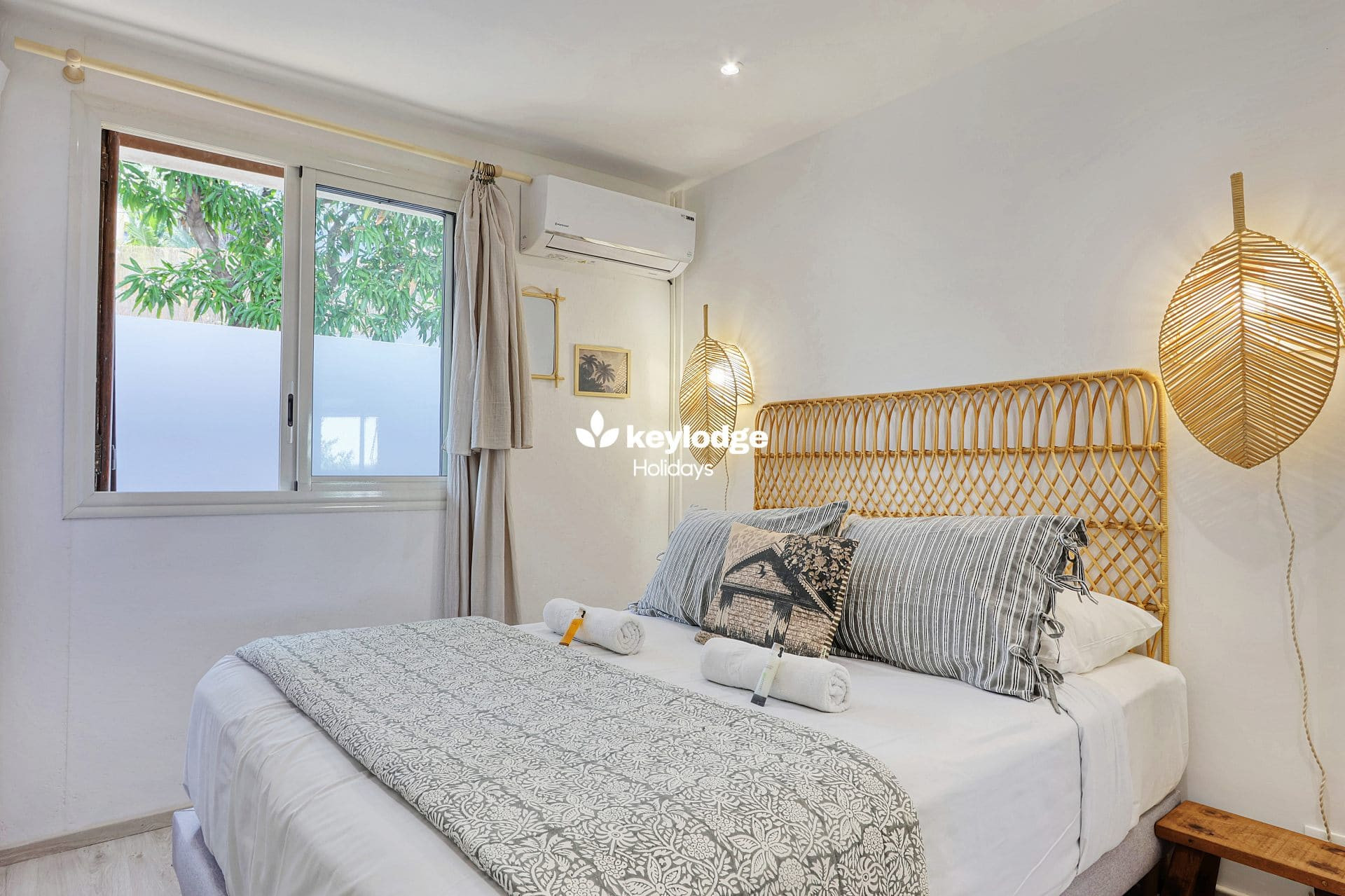 ✅ Two air-conditioned bedrooms. The first bedroom is equipped with a Queen-size bed, and the second bedroom has a double bed with a wardrobe.