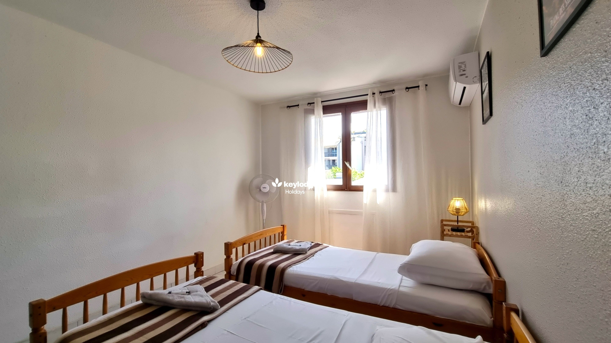 ✅ A air-conditioned bedroom with 2 single beds and storage space.