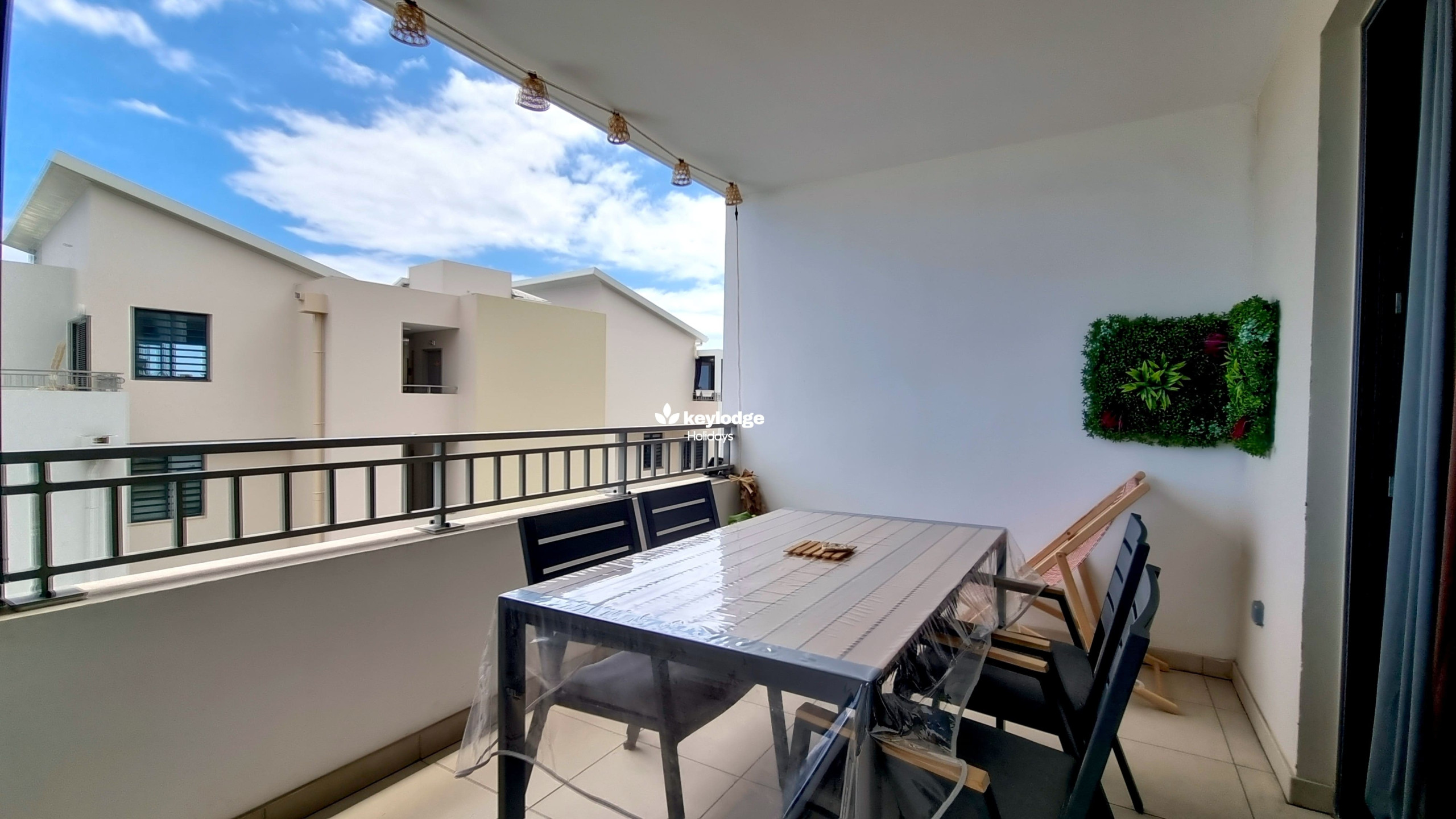 ✅ Une terrasse avec un coin repas pour 4 personnes et vue sur la mer, idéal pour un apéro après une journée à la plage.