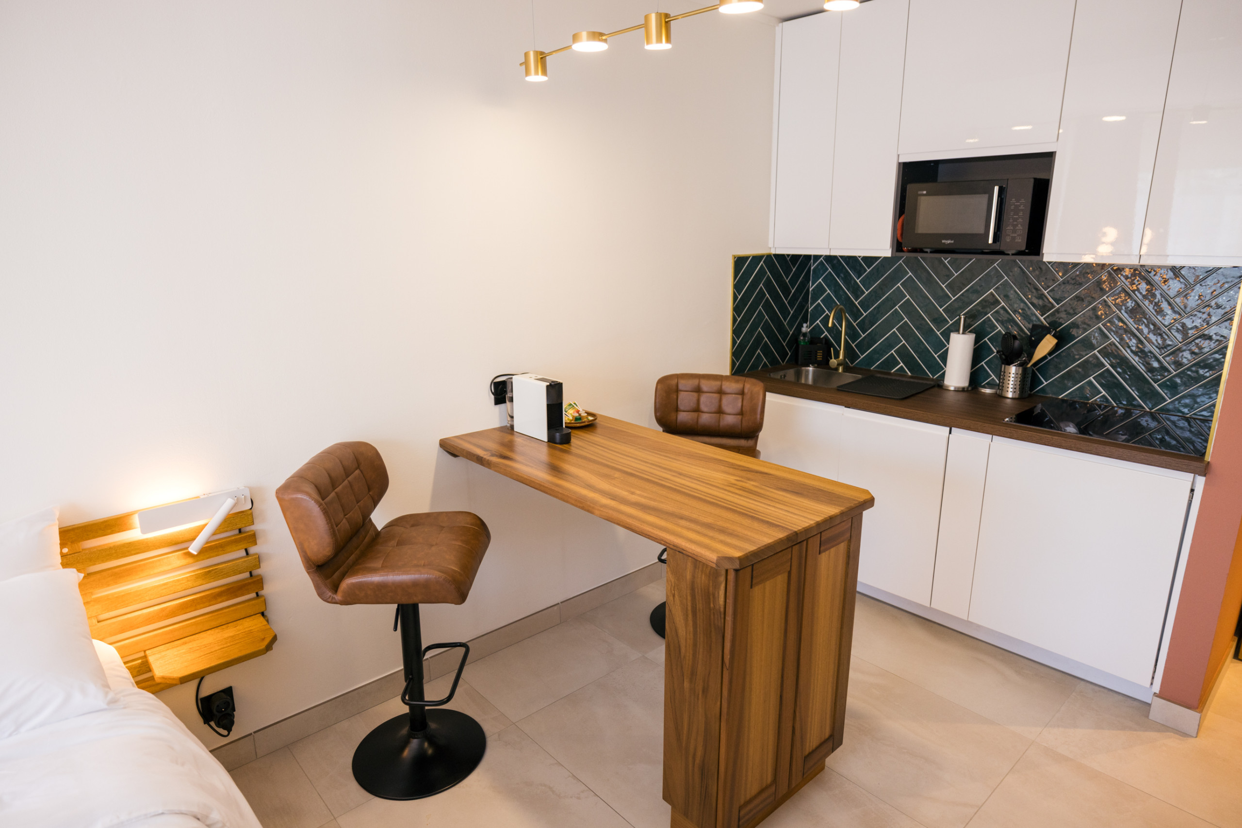✅ Une cuisine intégralement agencée et pensée pour votre séjour, avec toute la vaisselle et ustensiles de cuisine, bouilloire, cafetière, micro-ondes ainsi qu’un réfrigérateur