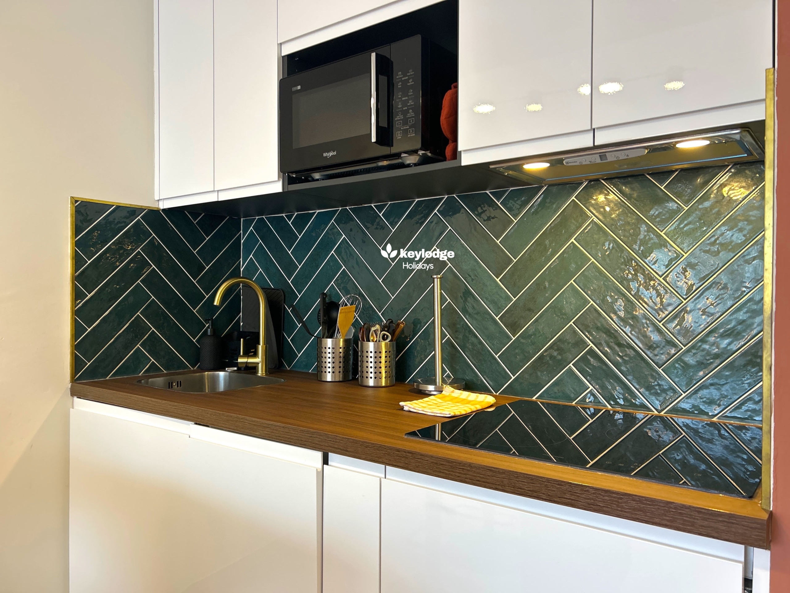 ✅ Une cuisine intégralement agencée et pensée pour votre séjour, avec toute la vaisselle, les ustensiles de cuisine, bouilloire, micro-ondes ainsi qu’un réfrigérateur.