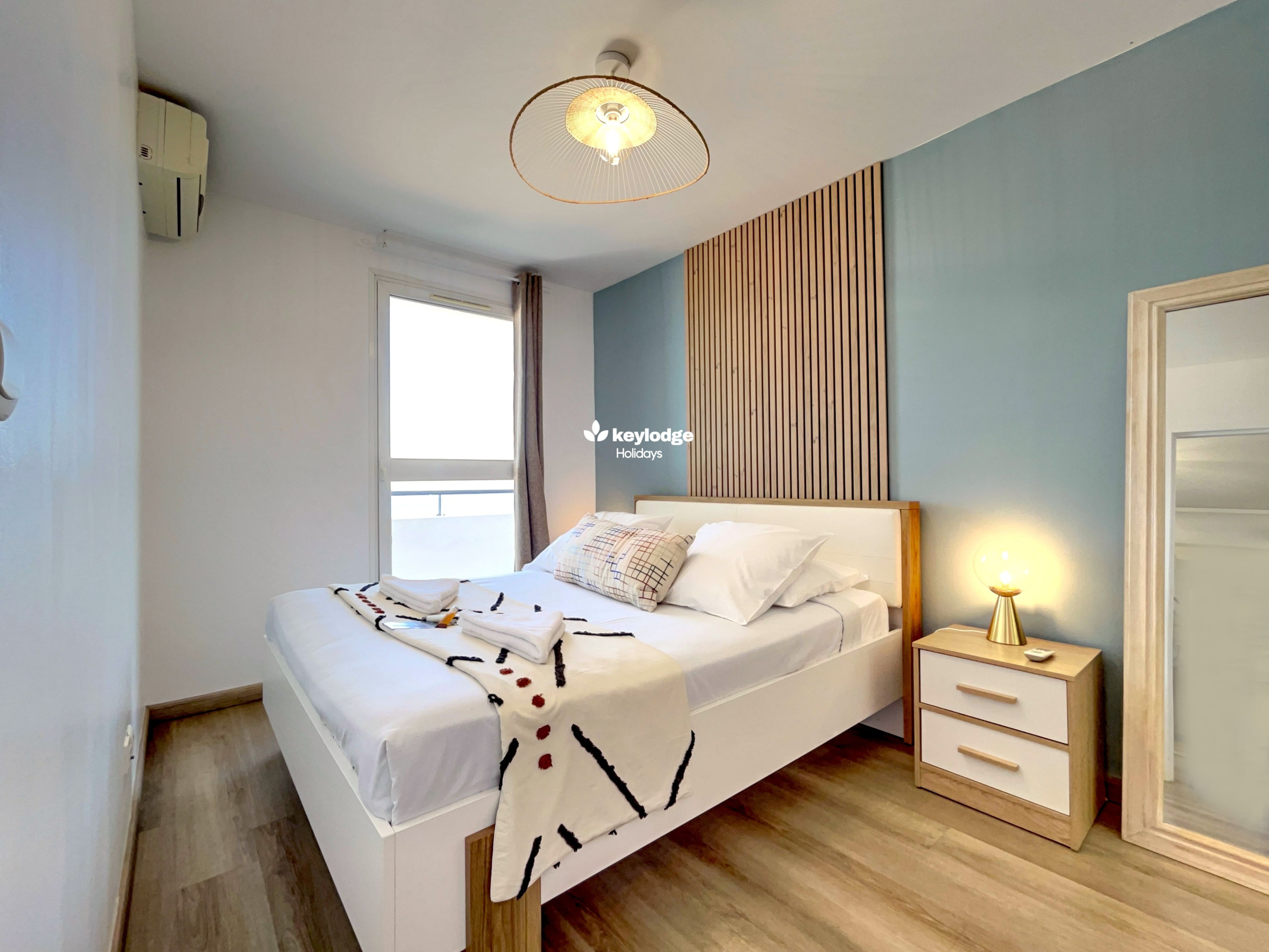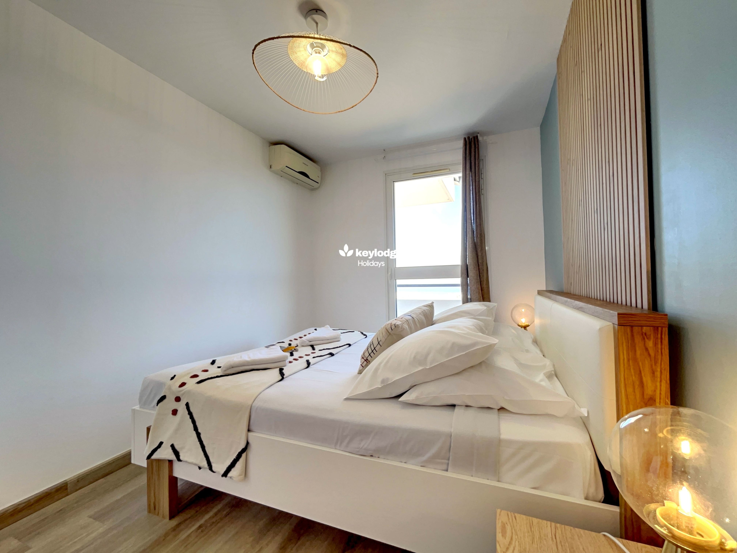 ✅ Une chambre parentale climatisée, équipée d'un lit double et d’un espace de rangement pour vos affaires et d’une salle d’eau avec douche ainsi que de deux vasques.
