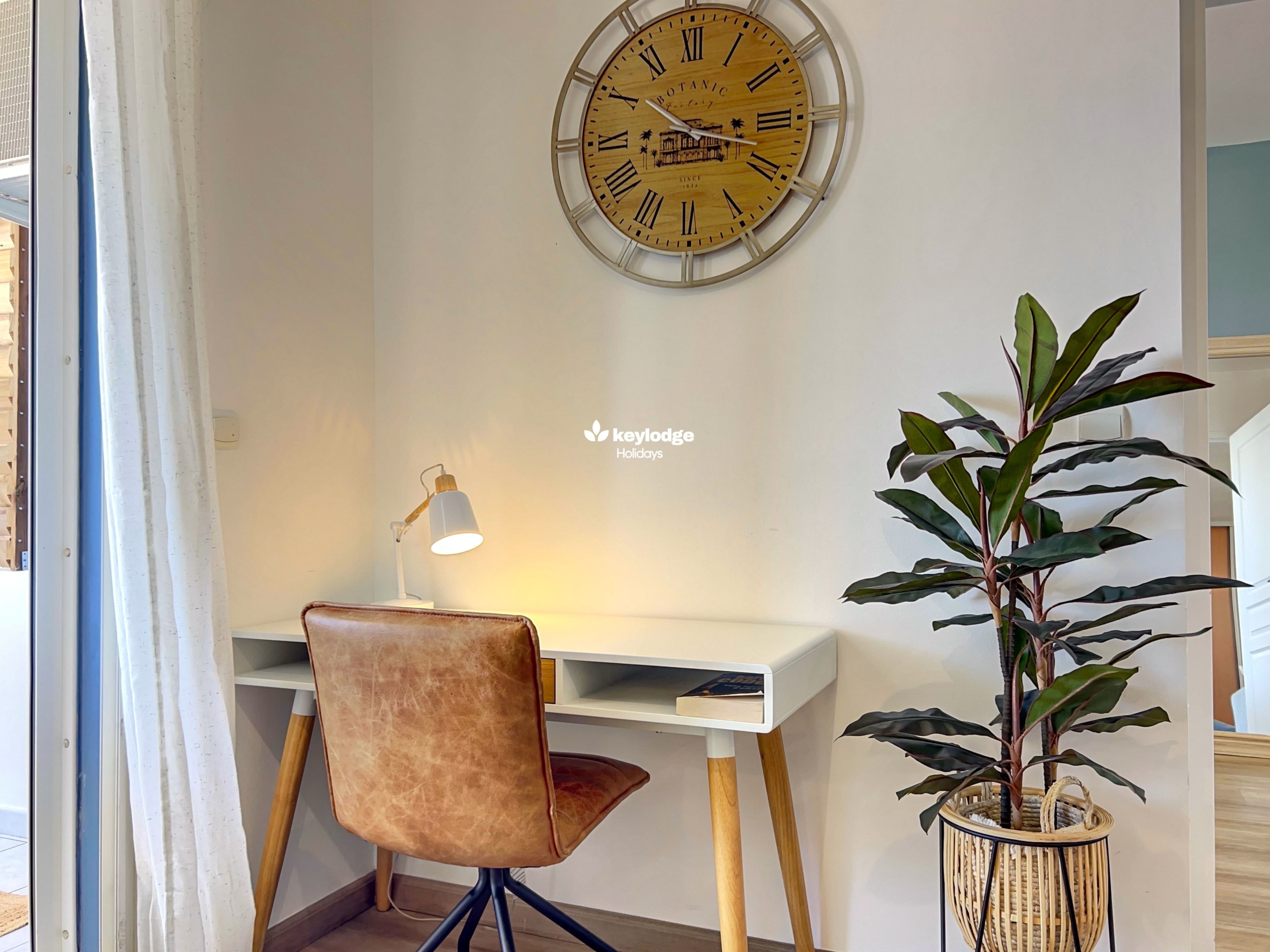 ✅ Un séjour avec un espace salon équipé d'un canapé, d'une Smart TV, d’une connexion internet avec la fibre, d’un coin repas pour 4 personnes et d’un petit bureau, idéal pour les télétravailleurs.