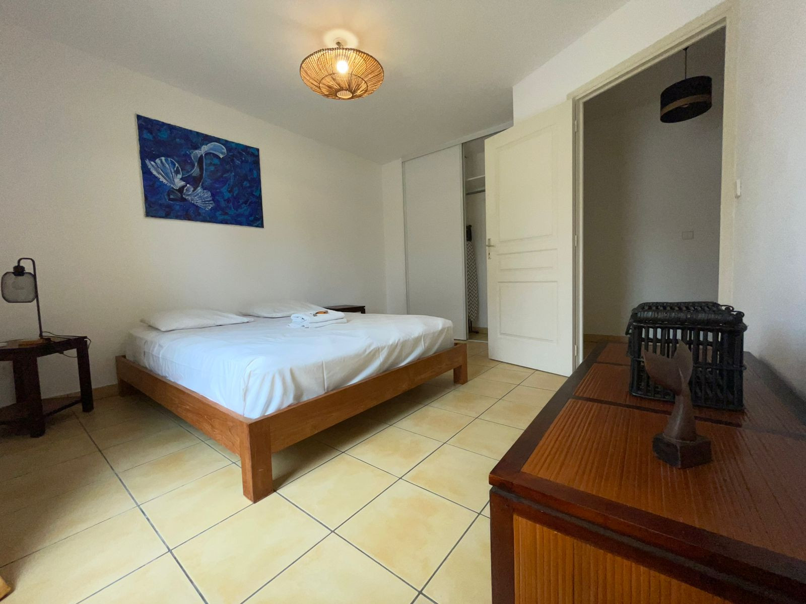 ✅Une deuxième chambre climatisée à l’étage, équipée d’un lit double et d’un espace de rangement pour vos affaires.