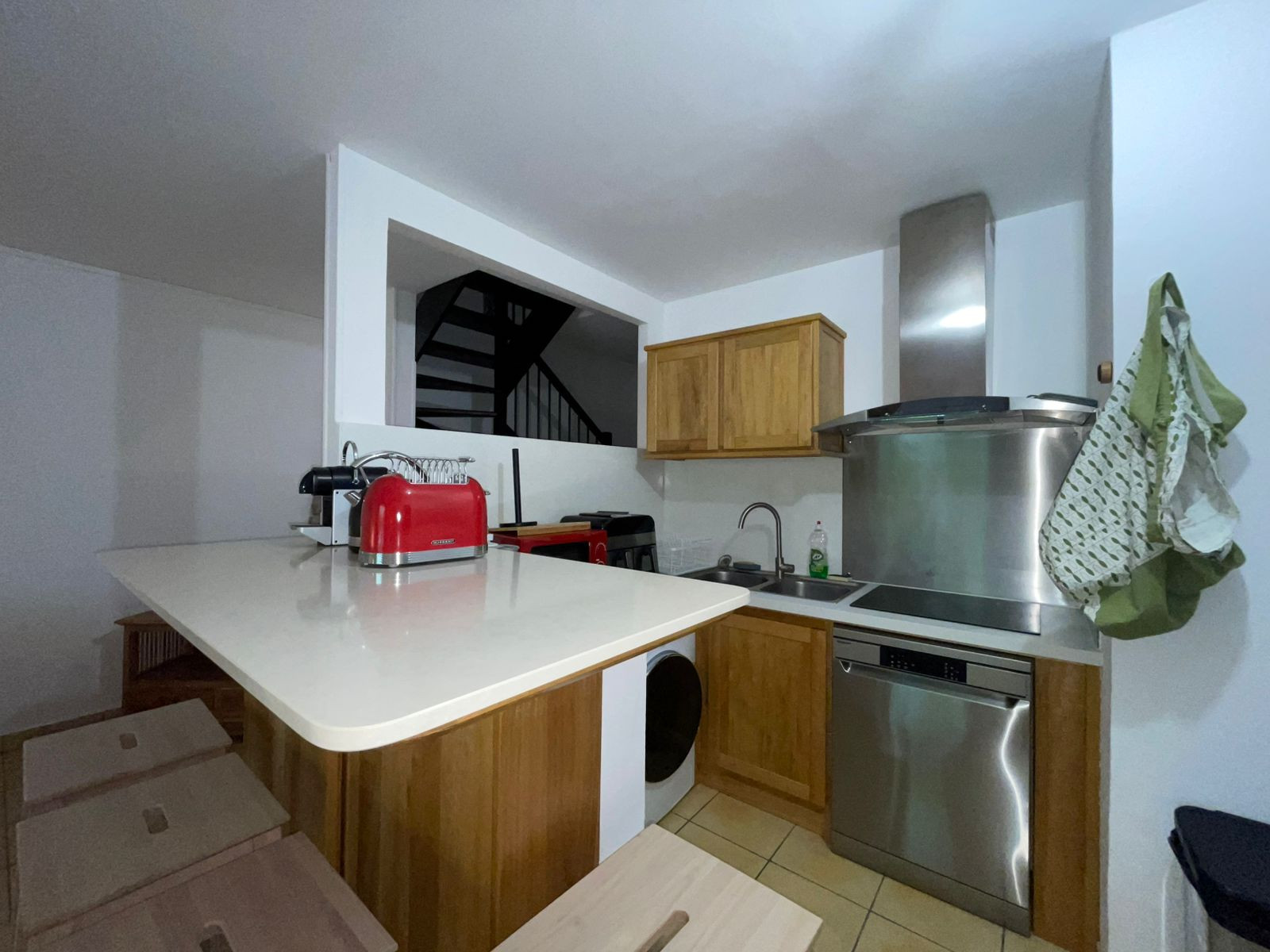 ✅ Une cuisine intégralement agencée et pensée pour votre séjour, avec toute la vaisselle, ustensiles de cuisine, bouilloire, micro-ondes, lave-vaisselle, un réfrigérateur et son congélateur. Elle dispose également d’un mange debout pour quatre personnes.