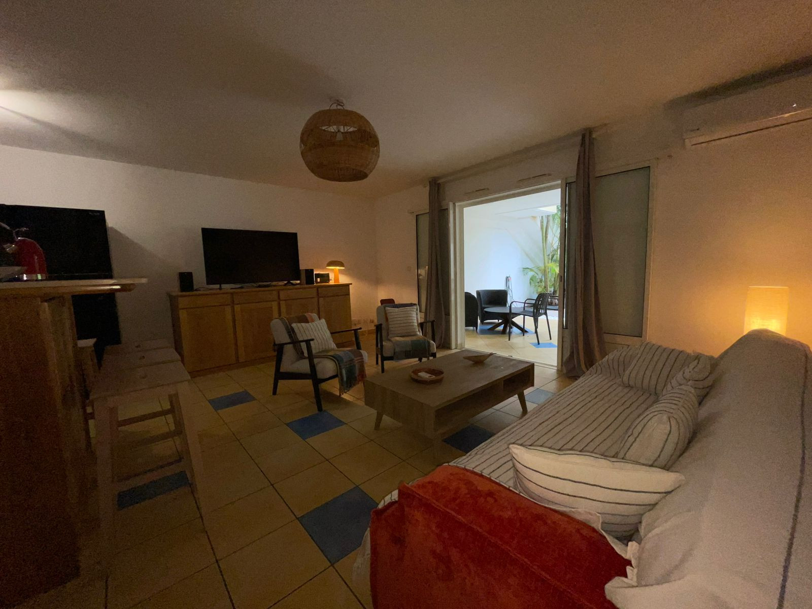 ✅Un séjour avec un espace salon équipé d'un canapé, d'une Smart TV avec les chaines Zeop et d’une connexion internet avec la fibre.